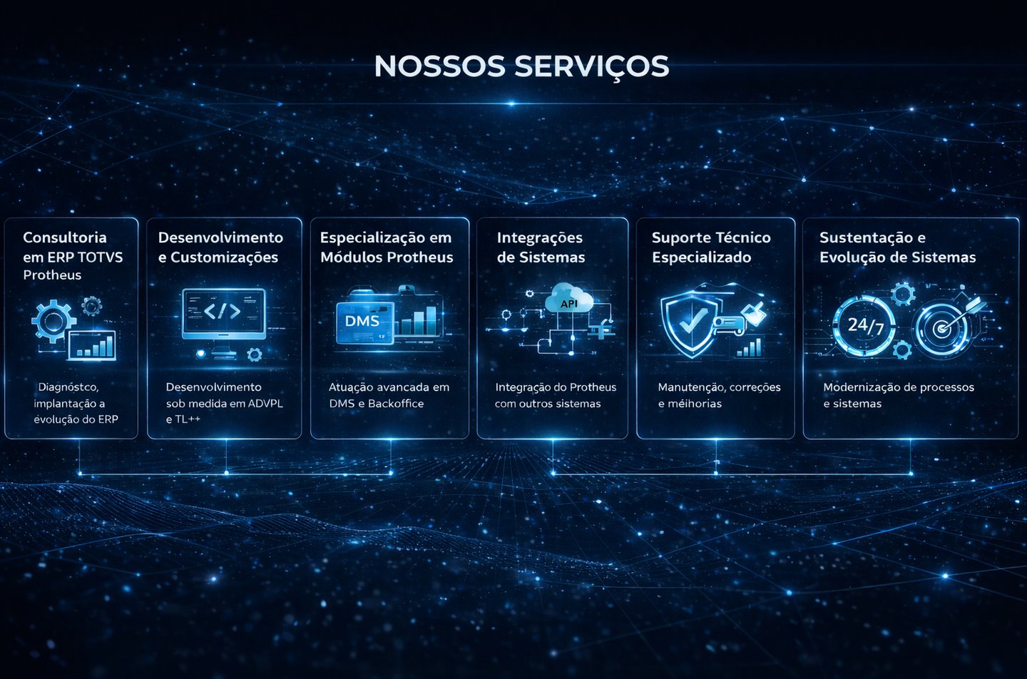 Consultoria e desenvolvimento focados no ERP Protheus.